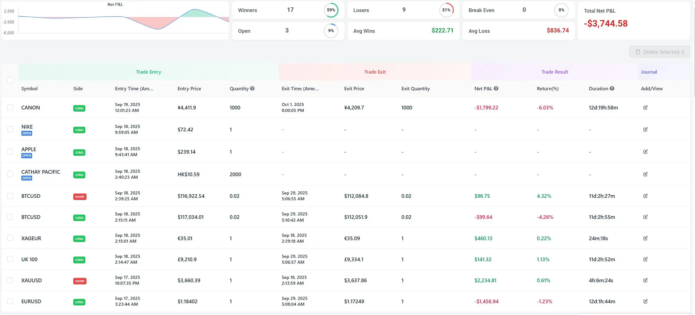 - Filter by Symbol: Use the Symbol filter to isolate different instruments and see where your real edge lies.
