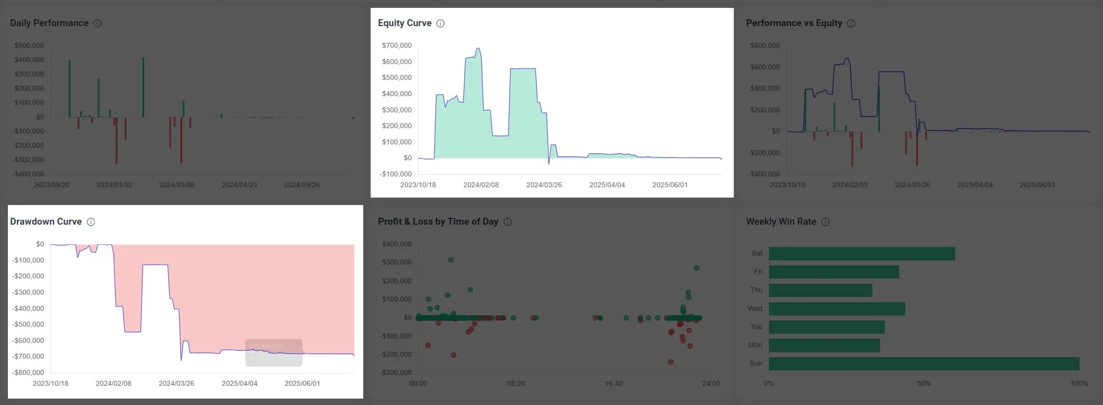 Track your Equity Curve and Drawdown Curve to stay aligned with your own risk parameters and position sizing rules, using results based on your imported activity.
