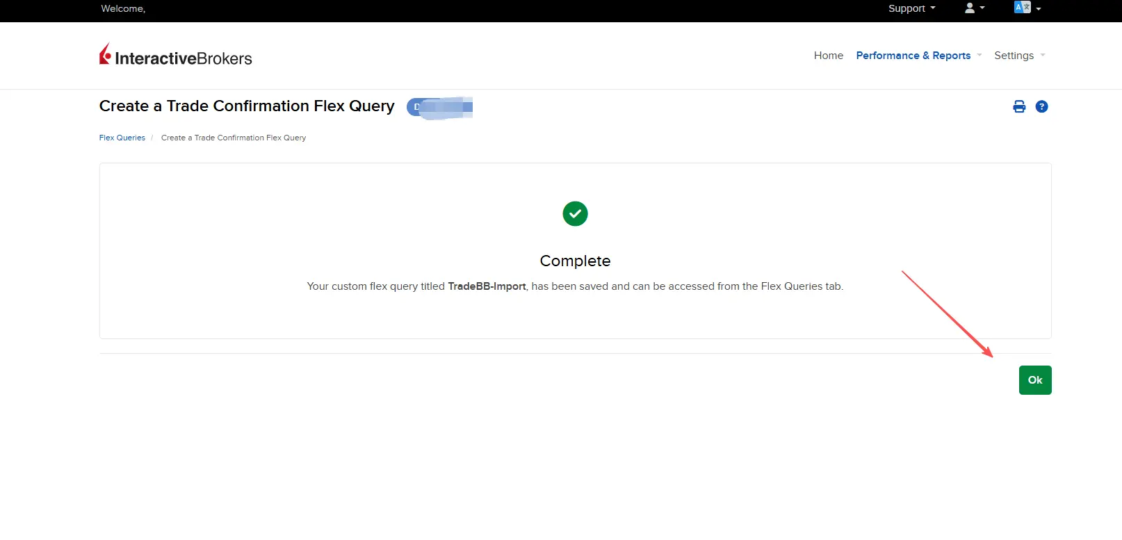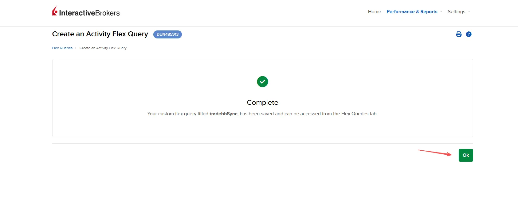 - You should see a confirmation message: "Create an Activity Flex Query - Complete."