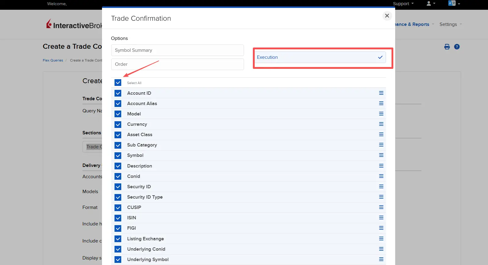 - Under "Select Sections," click on Trade Confirmation.