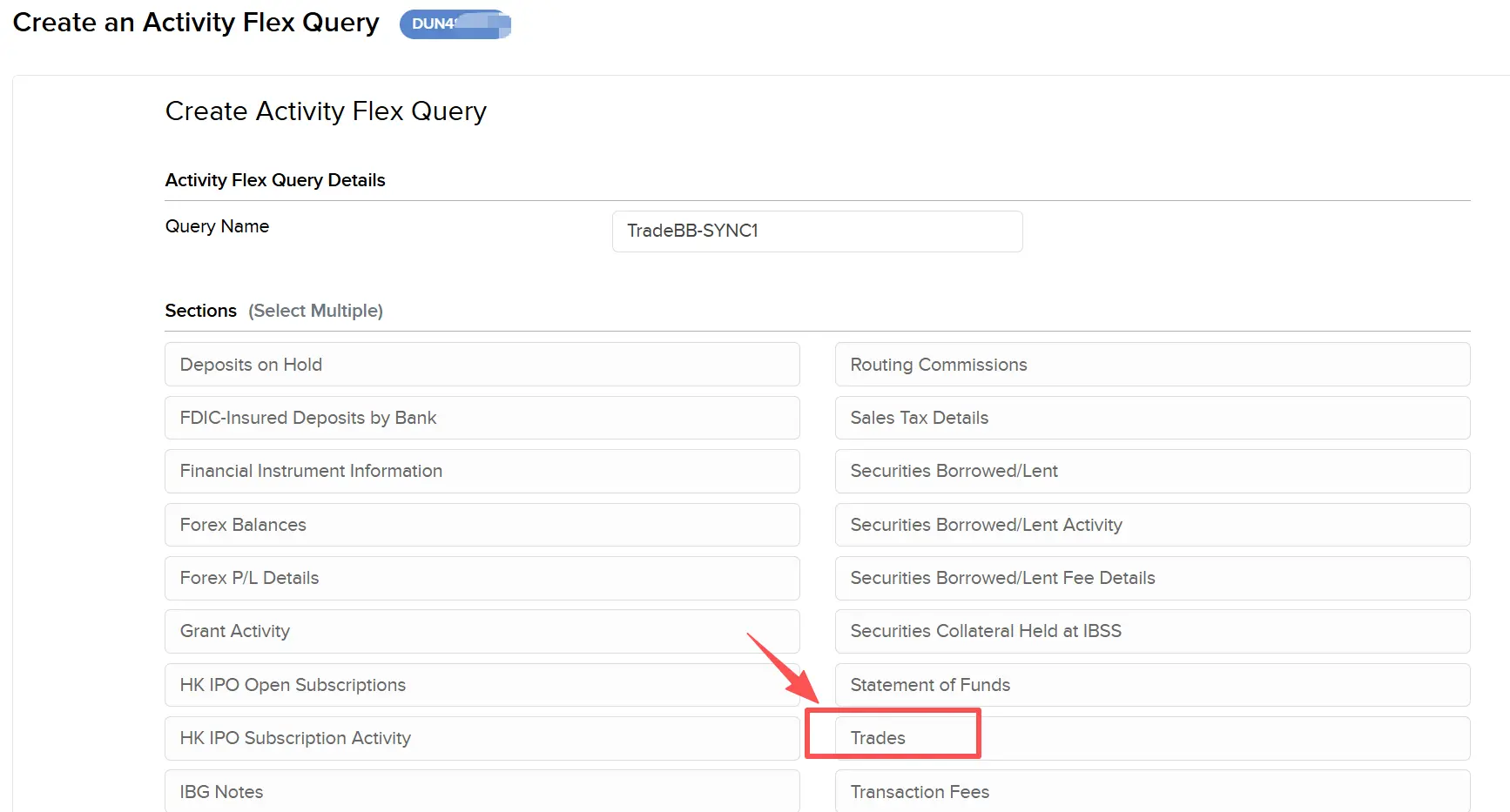 - Under "Select Sections," choose Trades.
