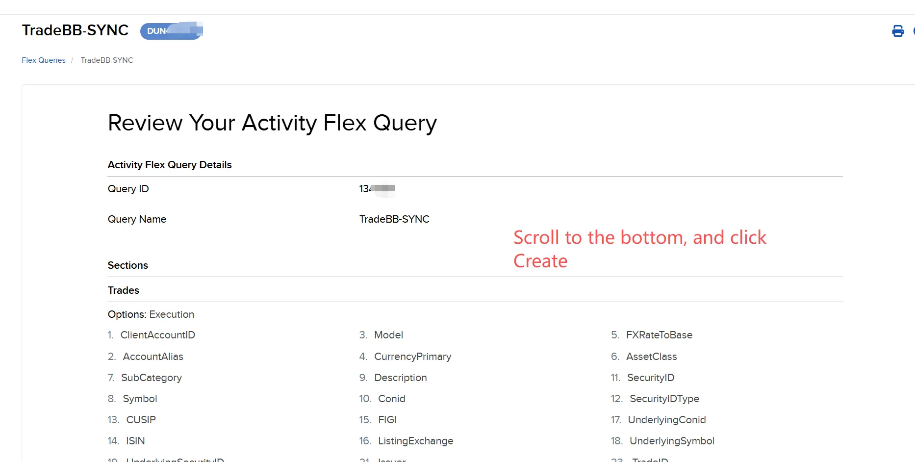 - You will be taken to the "Review Your Activity Flex Query" page.